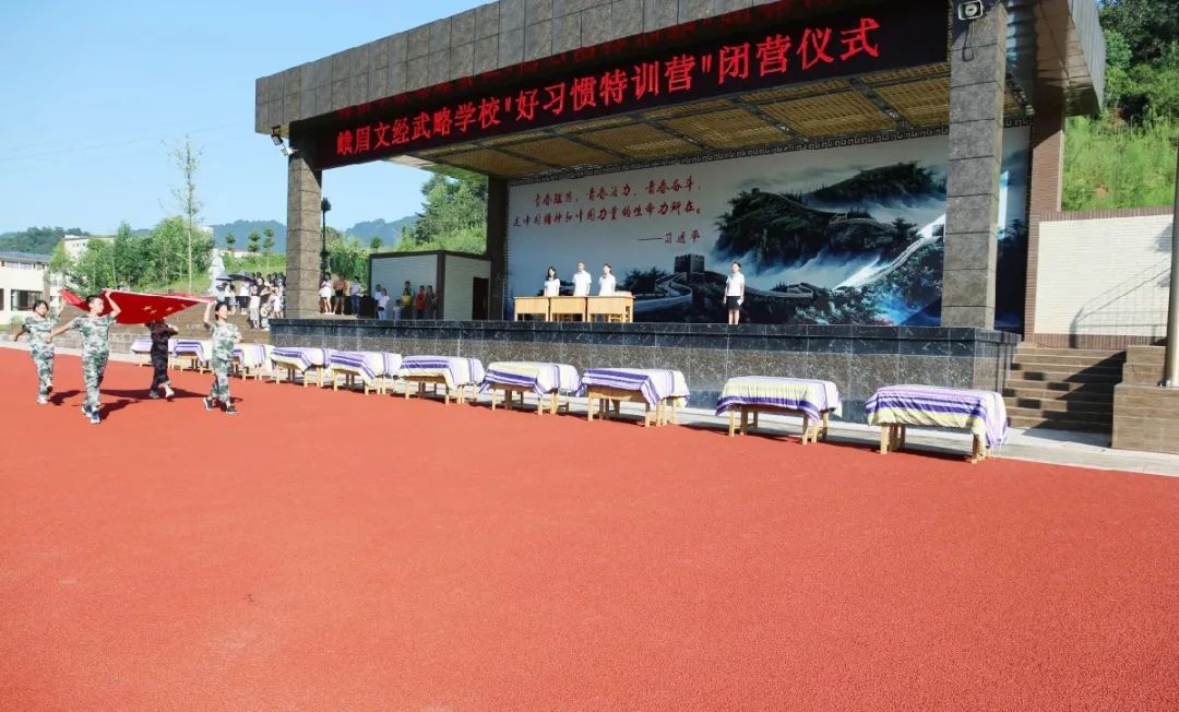 扛过烈日的炙烤,经过汗水的洗礼,峨眉文经武略学校2020级初一新生为期6天的“好习惯特训营”即将拉上帷幕。8月26日上午,特训营闭营仪式在运动场隆重举行。全体初一新生家长应邀出席。学校政教处副主任骆燕玲主持。